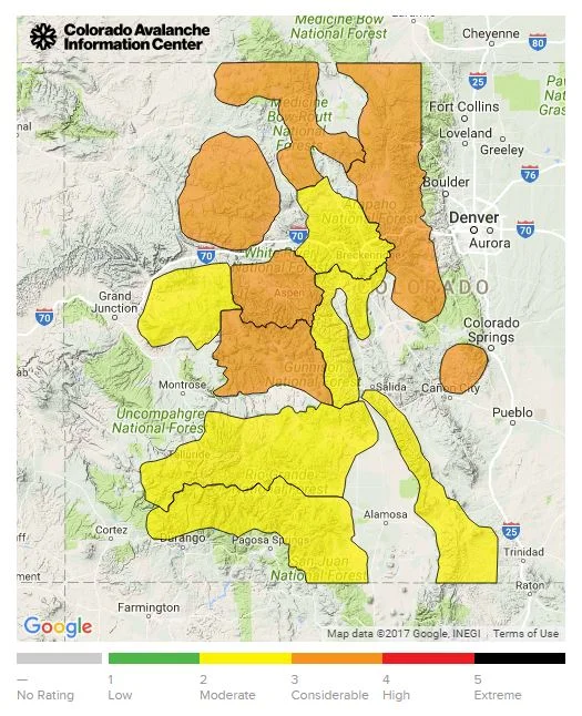 For current avalanche conditions in Colorado, click the image or follow avalanche.state.co.us.
